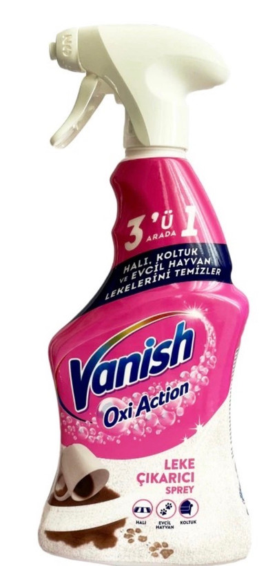 اسپری Vanish Oxi Action با فرمول قدرتمند ۳ در ۱، دشمن سرسخت هر نوع لکهست! مناسب برای فرش، مبل و لکههای حیوانات خانگی بدون نیاز به شستوشو و بدون آسیب به بافت پارچه.